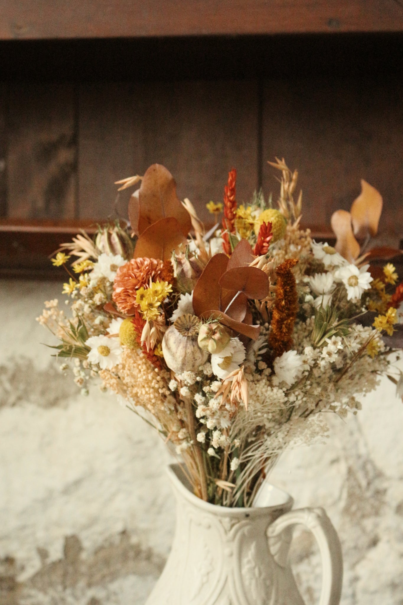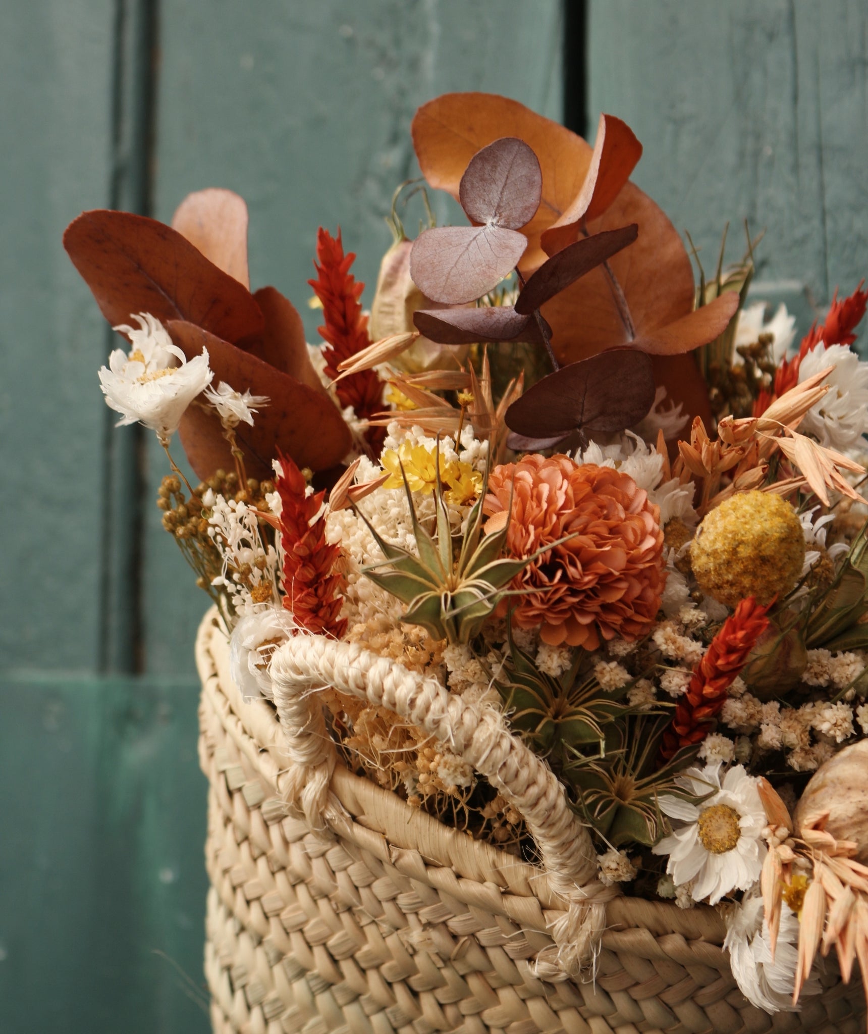 Inspirado nas cores quentes e acolhedoras da canela, este arranjo de flores secas é uma celebração do outono. Com tons terracota, castanhos, beges e amarelos, 'Cinnamon' é como um abraço acolhedor da estação.
